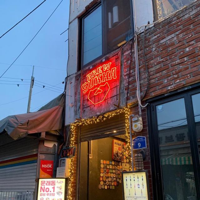 문래 창작촌 골목에 위치한 루프탑 호프 브루스카. 옥상에 조명이 환하게 켜져 있어 길을 가다가도 절로 시선이 간다. 80명까지 수용할 수 있을 정도로 루프탑이 넓은 데다 대형 스크린까지 설치되어 있어 야구나 축구 등 경기 시즌엔 더욱 즐겁게 이용할 수 있다고. 맥주와 잘 어울리는 안주가 많은데 하나만 고르기 힘들거나 여럿이 방문했다면 소시지, 치킨, 감자튀김, 나초, 샐러드까지 한 번에 즐길 수 있는 ‘브루스카 플래터’를 추천한다. 푸짐한 것은 물론 맛까지 훌륭하니 앉은 자리에서 맥주를 계속 시키게 될 것. 미리 예약할 수도 있으니 더욱 쾌적하게 즐기고 싶다면 참고하자.