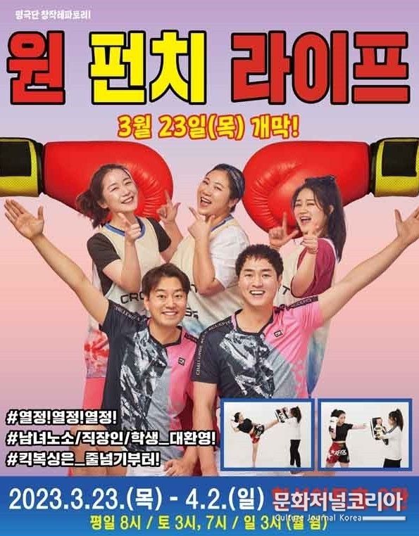 문화저널코리아 정의준 기자 | 명극단의 연극 '원 펀치 라이프'가 2023년 3월 23일부터 4월 2일까지 한성아트홀 2관에서 공연된다.