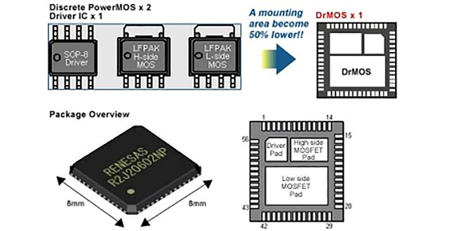 이러한 과정을 단순화하면서 효율을 높인 것이 DrMOS다. DrMOS는 드라이버 + H 모스펫 + L 모스펫을 합친 구조를 가진다. 전력 관련 부품 특성상 거치는 단계가 늘어날수록 반응성은 낮아지고, 저항은 늘어나거나 생기기 마련인데 이를 최소화한 방식이다.