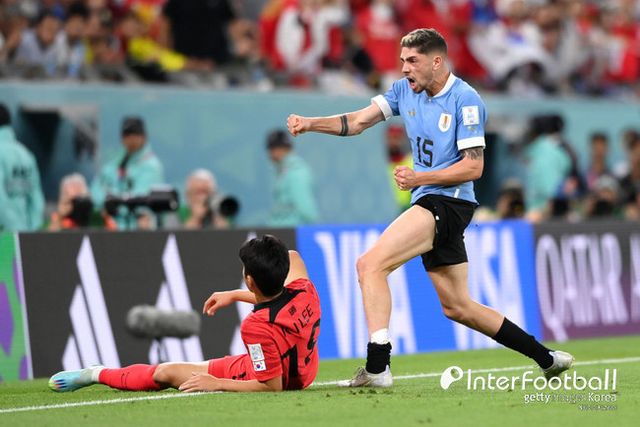 하지만 결국 발베르데의 발끝에서 우루과이의 선제골이 나왔다. 전반 10분 우루과이의 코너킥 공격에서 발베르데가 올린 공을 코아테스가 홀로 높게 떠 헤더로 마무리했다. 이후 발베르데는 한국 관중들을 향해 다시 한번 어퍼컷 세리머니를 펼쳤다.