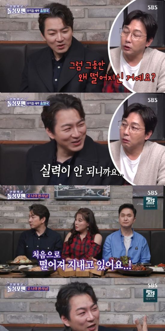 탁재훈은 "떨어진 건 왜 떨어졌다고 생각하냐"라며 물었고, 송일국은 "당연한 거 아니냐. 실력이 안 되니까 떨어지는 거다"라며 못박았다.