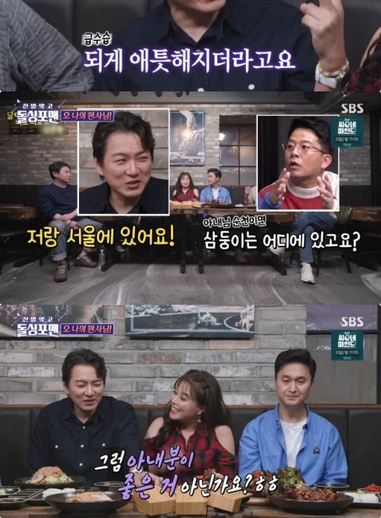 또 탁재훈은 "송일국 씨는 잘 안 나오시니까 우리가 털 게 많다"라며 기대했고, 이상민은 "우리한테는 우상이다. 애 세 명을 그리고 아내분이 판사다. 지금 어디 법원에 계시냐"라며 궁금해했다.