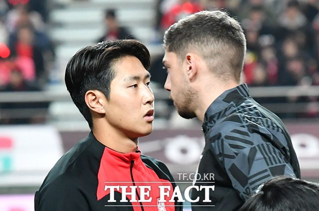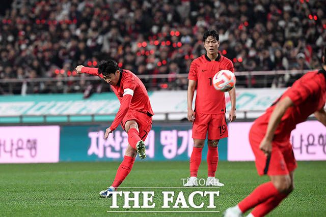 [더팩트ㅣ서울월드컵경기장=남용희·박헌우 기자] 대한민국과 우루과이의 평가전이 28일 오후 서울 마포구 서울월드컵경기장에서 열린 가운데 황인범이 득점 후 세리머니를 하고 있다.