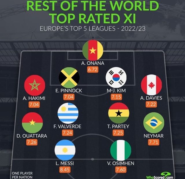 네이마르(파리 생제르맹, 브라질), 토마스 파티(아스널, 가나), 페데리코 발베르데(레알 마드리드, 우루과이), 단고 와타라(본머스, 부르키나 파소)가 중원에 위치했고 김민재의 나폴리 동료인 빅터 오시멘(나폴리, 나이지리아)이 최전방에 있었다. 리오넬 메시(파리 생제르맹, 아르헨티나)가 최전방에 나섰다.