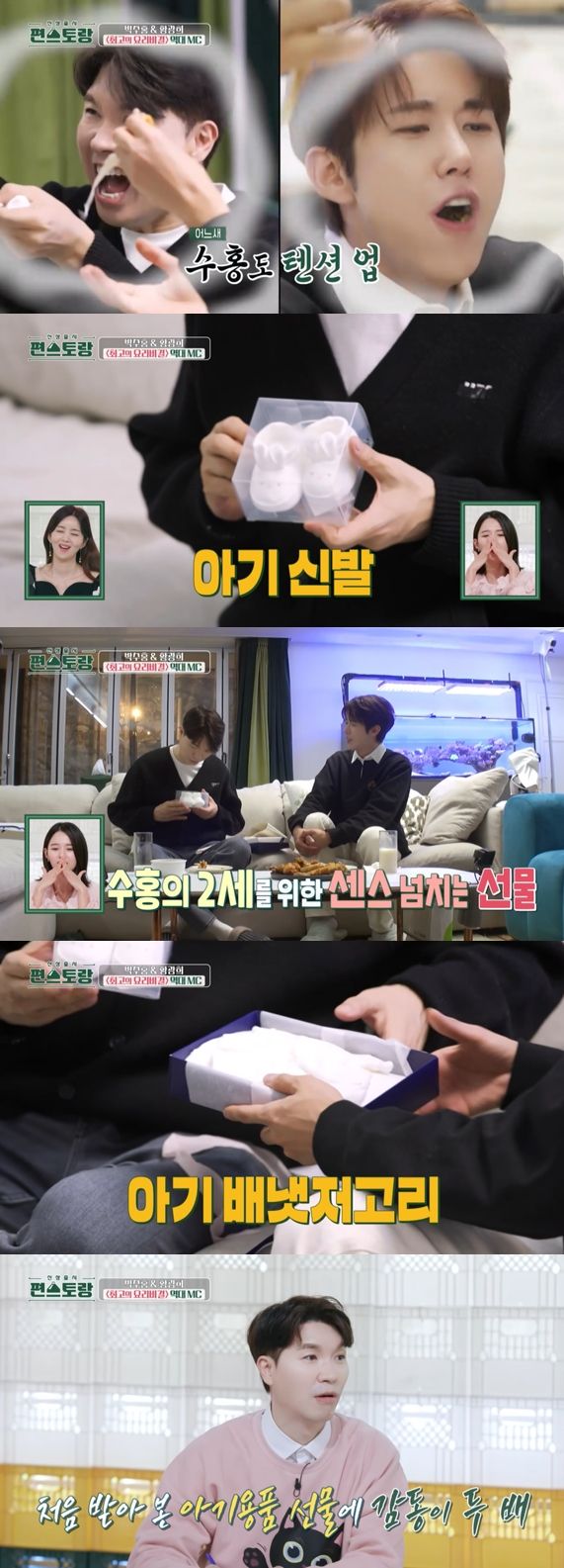 광희가 준비한 선물은 아기 배냇저고리와 신발이었다. 앞서 박수홍은 2세 계획을 공개한 바 있다.