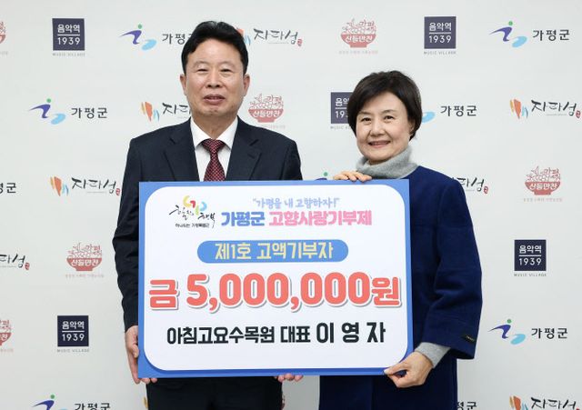 앞서 지난 3월에는 상면에 소재한 아침고요수목원의 이영자 대표가 고향사랑기부제의 기부 한도금액인 500만 원을 기부해 가평군은 벌써 2명의 고액기부자가 탄생했다.뿐만 아니라 군은 자매도시인 서울 은평구와 전남 목포시와 상호기부를 추진해 각각 500만 원과 150만 원을 모금했다.