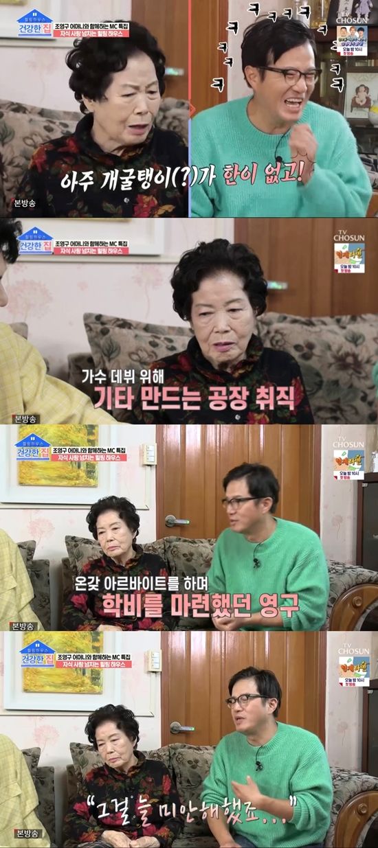 또 어머니는 "(조영구가) 데뷔 초 고생 많이 했다"면서 "가수 한다고 차비만 들고 서울로 상경해서 기타 만드는 공장에 취직했다. 매일 옥상에 올라가서 노래 연습하니까 '듣기 싫어 죽겠다'고 말하기도 했다. 그러더니 대학에 가더라. 공부를 안 했는데 어떻게 대학에 갔는지 모르겠다"고 이야기했다.
