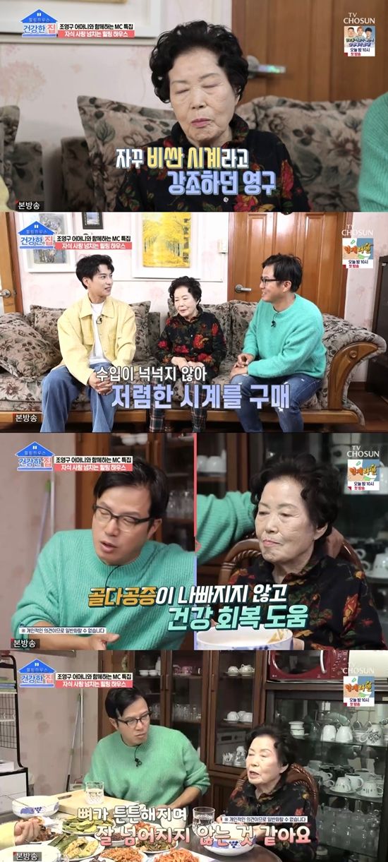 22일 방송된 TV조선 시사·교양 프로그램 '건강한 집'에는 일일 MC 김원준이 조영구의 고향 충주에 방문해 조영구 모자(母子)를 만났다.