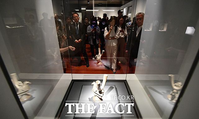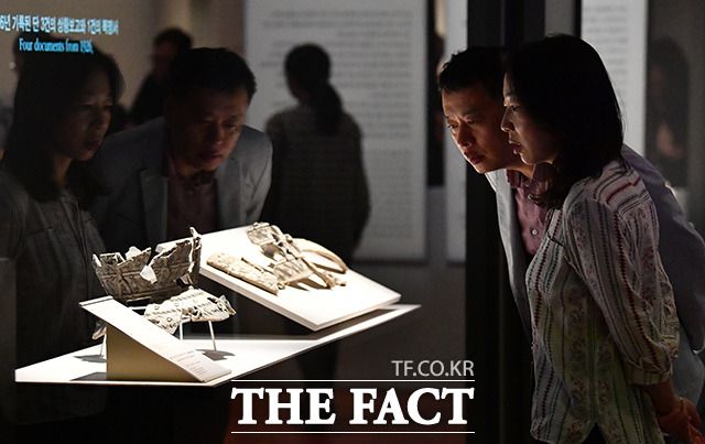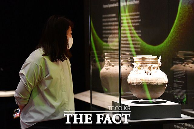 [더팩트ㅣ박헌우 기자] 25일 오전 서울 용산구 국립중앙박물관에서 '영원한 여정, 특별한 동행' 특별전 언론공개회가 열린 가운데 관계자들이 전시를 관람하고 있다.