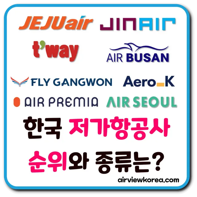 그럼 우리나라 저가항공사의 종류와 특징별 순위를 알려드리겠습니다