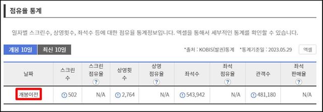 개봉 이전'범죄도시3' 점유율 통계 / 영화관입장권통합전만망 제공