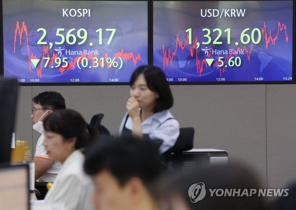 이날 코스피는 전날보다 7.95포인트(0.31%) 내린 2,569.17에 마쳤다.