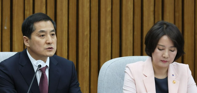 국민의힘 박대출 정책위의장이 7일 오후 국회에서 열린 스타트업 기술탈취 예방 및 회복 민당정 협의회에서 발언하고 있다. 오른쪽은 이영 중소벤처기업부 장관.[사진=연합뉴스]"남동발전과 같은 발전 공기업이 중소기업의 기술을 유출하면서 엄청난 피해를 입게 됐습니다. 다시는 저와 같은 피해가 없도록 특허·기술침해에 대한 처벌 기준이 강화돼야 합니다."
