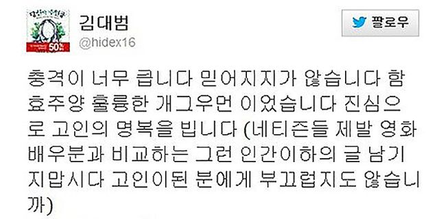 특히 고인의 소식이 전해진 이후 몇몇 누리꾼들이 고인의 이름이 배우 한효주와 비슷하다는 이유로 인신 공격성 악플을 달았다.