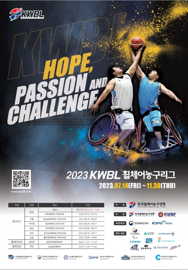 10일 한국휠체어농구연맹에 따르면 '2023년도 KWBL 휠체어농구리그' 개막식이 오는 14일 오후 1시부터 춘천 호반체육관에서 열린다.