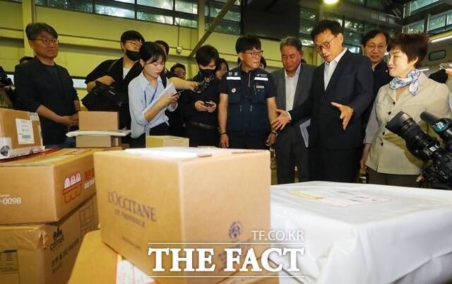 민 의원은 박스 중 양 옆에 구멍이 뚫려 있는 박스를 가르키며 "저희당에서 (과거) 구멍 있는 박스를 만들자고 했는데, 현장에서 보니 박스에 구멍이 거의 없다"고 말했다. 관계자들은 "신규 발주된 박스에는 구멍이 있다", "손잡이 박스를 공급하고 있고, (박스에 구멍이 없는) 개인(이 발송한) 박스도 있다"고 해명했다. 이에 민 의원은 "어쨋든 개인이 만들어도 택배는 여기에서 하니까 일원화해 달라"고 당부했다.
