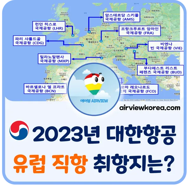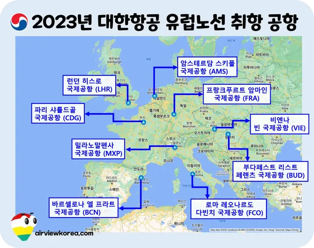 2022년 6월~7월 대한항공 유럽 직항노선 취항지