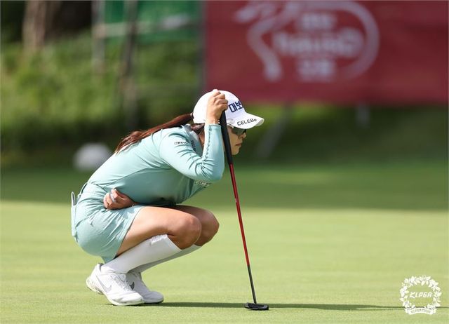 김지현이 29일 1라운드 4번 홀(파4)에서 그린을 파악하고 있다.