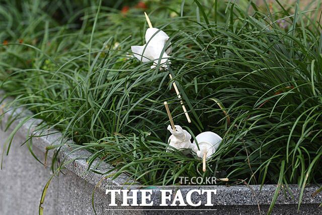 기분 좋게 홍대를 찾은 시민들은 탕후루 쓰레기가 버려진 곳을 지날 때 악취로 인해 인상을 찌푸리거나 얼굴 주변으로 날아드는 파리를 쫓았다. 또 봉투에 꽂힌 꼬치를 보고 혀를 차는 시민들도 보였다.
