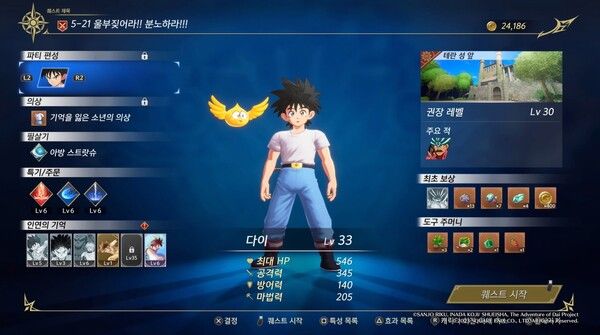 1989년 연재를 시작해 1996년 연재를 종료한 만화 ‘다이의 대모험’이 게임으로 탄생했다. 반다이남코는 지난 9월 28일 ‘인피니티 스트랏슈 드래곤 퀘스트 다이의 대모험(이하 다이의 대모험 게임)’을 공식 발매 한다. ‘드래곤 퀘스트’시리즈 일환으로 개발된 게임이나 액션성을 강화해 일종의 액션RPG형태로 개발된다. 외형상으로는 과거 발매됐던 ‘드래곤퀘스트 히어로즈’시리즈가 연상된다. 여기에 최근 방영된 애니메이션을 대거 참고한 듯 연출면에서도 힘을 주면서 새로운 시리즈로서 도약을 꿈꾼다.