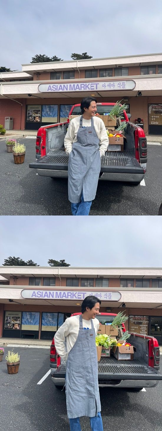 공개된 사진 속 조인성은 주방을 책임지는 메인 셰프답게 각종 식자재에 둘러싸여 해맑게 웃고 있다.