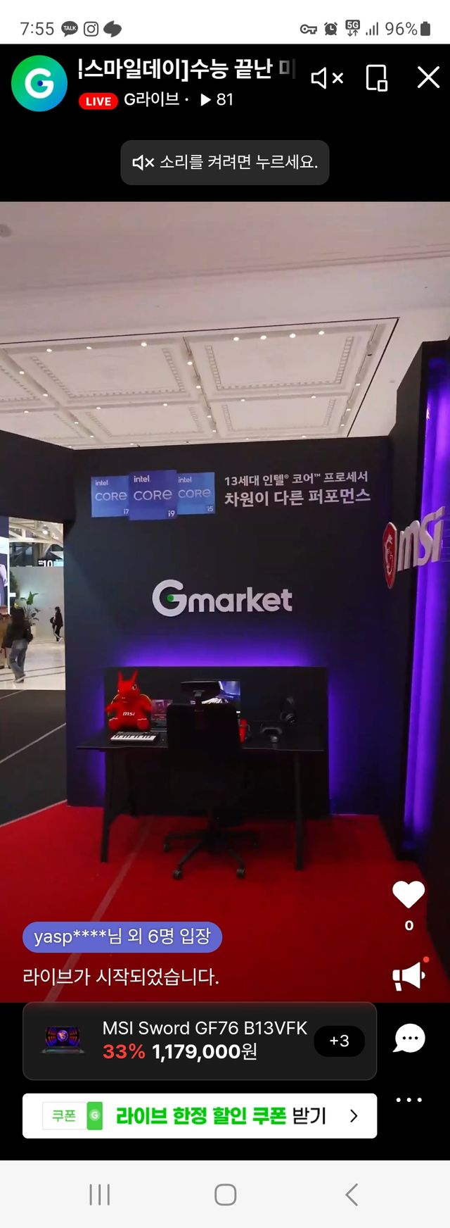 한편, 이날 오후 7시부터 테크 유튜버 고나고가 G마켓 라이브커머스인 G라이브 방송으로 MSI 노트북 특가 판매를 진행했다.