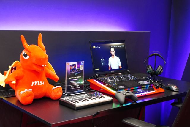 Raider GE78 HX 13VI-i9 QHD WIN11 모델을 기반으로 한 게이밍, 작곡 시스템도 시연됐다. 데스크톱 시스템이라면 덩치 큰 데스크톱부터 모니터, 키보드까지 더해 차지하는 공간이 상당히 많은데, 노트북만으로 모든 걸 해결해 깔끔하다.