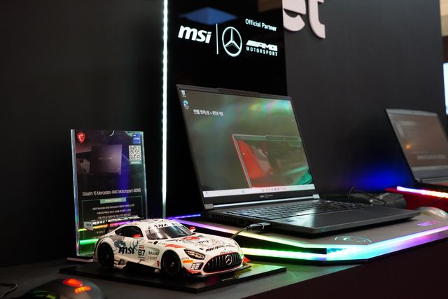 메르세데스-AMG 모터스포츠와 협업한 Stealth 16 Mercedes-AMG Motorsport A13VG도 전시됐다. 노트북 옆에는 보기 드문 MSI 데칼의 모형 자동차 다이캐스트가 함께 전시됐다.
