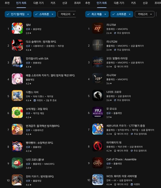 주간 순위는 모바일 게임 구글 플레이 기준 순위를 통해 1주간 어떤 게임들이 유저들의 주목을 받았는지 살펴보는 코너다.
