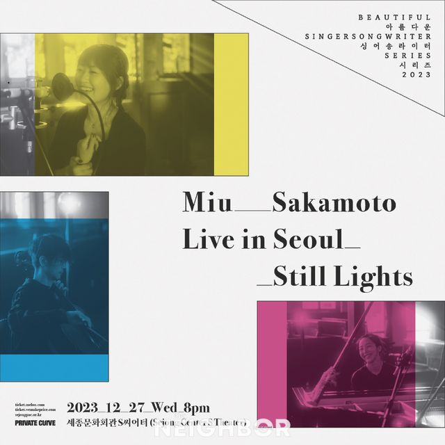 올해 세상을 떠난 작곡가 故사카모토 류이치와 일본 뮤지션 야노 아키코의 딸인 뮤지션 사카모토 미우의 공연 <Still Lights>가 12월 27일 세종문화회관에서 열린다. 기획 공연 ‘아름다운 싱어송라이터 시리즈’의 일환으로, 그의 첫 단독 내한 공연이다. 사카모토 미우는 열여섯이던 1997년, 사카모토 류이치가 음악 작업을 한 드라마 <스토커 ∼도망칠 수 없는 사랑>의 주제곡에 보컬로 참여하며 음악 활동을 시작했고, 이후 본격적인 가수 활동을 이어왔다. 또한 올해 제천국제음악영화제 심사위원으로 초빙되어 한국과도 인연을 맺었다. 청아하면서 호소력 짙은 목소리와 편안한 선율의 조화로 연말에 온기를 더해줄 공연이다.