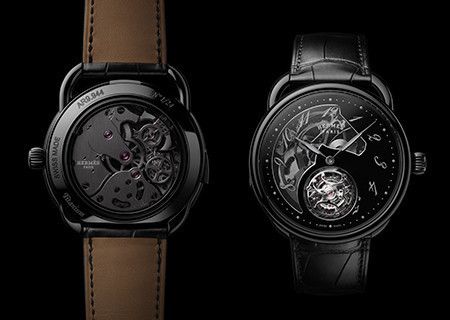 24개의 넘버드 및 리미티드 시리즈로 제작된 아쏘 리프트 투르비용 미닛 리피터 쏘 블랙은 그랑 푸 에나멜 블랙 다이얼이 장착되었다. 승마 세계에서 영향을 받아 디자인된 말 형상 프레임은 케이스의 곡선을 따라 유려하게 컷아웃되어, 그 사이로 선보이는 더블공 미닛 리피터의 복잡한 메커니즘을 더욱 매혹적으로 드러낸다. 이 전통적인 시계 컴플리케이션 기능 위로 또 하나의 특별한 컴플리케이션인 플라잉 투르비용을 더했고, 이를 말의 목 부분에 감기듯 위치한 6시 방향의 동그란 구멍을 통해 확인할 수 있다.
