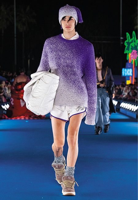 킴 존스가 디올맨의 2023년 봄 컬렉션의 게스트 디자이너로 ERL의 엘리 러셀 린넷즈를 초대했다. 캘리포니아 베니스 비치의 자유분방한 스트리트 감성이 디올 하우스에 파도처럼 밀려온 컬렉션은 경쾌하고 강렬했다. 대담한 컬러와 패턴을 디올의 아카이브에 적절하게 녹였고, 감각적으로 스타일링해 컬렉션의 완성도를 높였다. 뾰족뾰족한 머리카락이나 컬러 스프레이를 뿌리고 비즈를 장식한 헤어스타일 또한 컬렉션에 젊은 활기를 불어넣은 요소였다. 누군가와 손잡는 족족 좋은 결과를 만들어내니, 이런 기세라면 킴 존스는 아마도 협업의 매력에 중독돼버리는 것이 아닐는지. LDS
