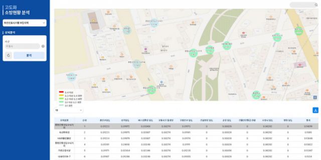 소방긴급차량 우선신호시스템 우선 보강지역 분석은 우선신호시스템 적용 필요성이 높은 교차로 신호등을 대상으로 인구, 버스정류장, 노인인구, 공장 등의 밀도와 교통사고 발생량 등을 고려해 경기도 전역 2만7,300여개의 교차로 신호등 중 우선설치지점 순위를 제공한다. 특히 공공데이터를 활용함으로써 각 지자체별로 해당 지역의 우선설치 교차로 신호등을 별도의 데이터 업로드 없이 확인할 수 있도록 편의성을 높였다.
