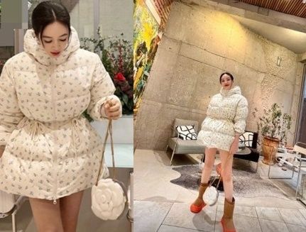 공개된 사진에는 작은 패턴이 그려진 패딩을 원피스처럼 연출한 김혜수의 모습이 담겼다. 진정한 하의 실종룩이 눈길을 끈다.
