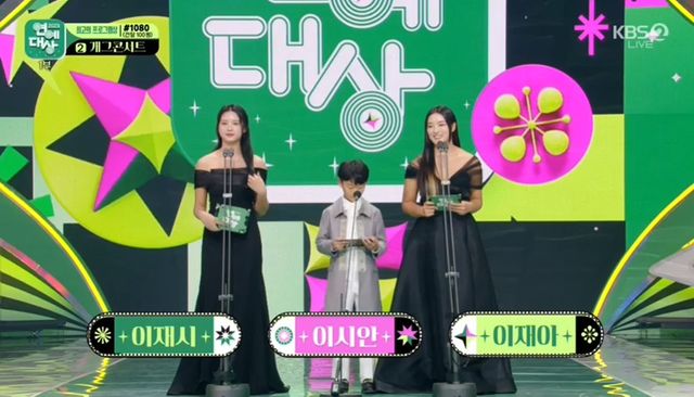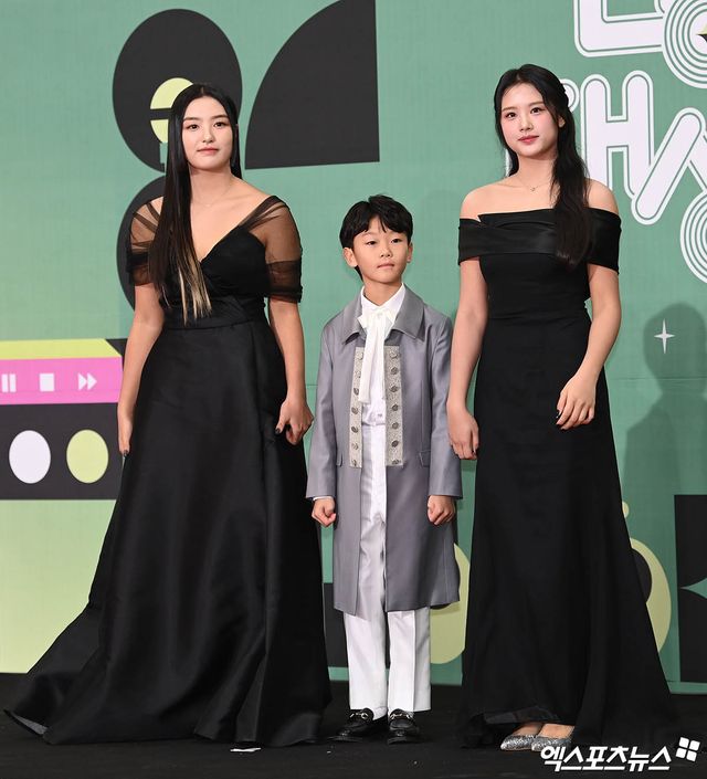 시상자로는 '슈돌'에 출연해 큰 사랑을 받았던 이동국의 자녀들이 나섰다. 쌍둥이 딸 재시와 재아는 화려한 블랙 드레스를 입고 등장했고, '대박이' 시안 또한 귀여운 정장 자켓을 입고 마이프 앞에 섰다.