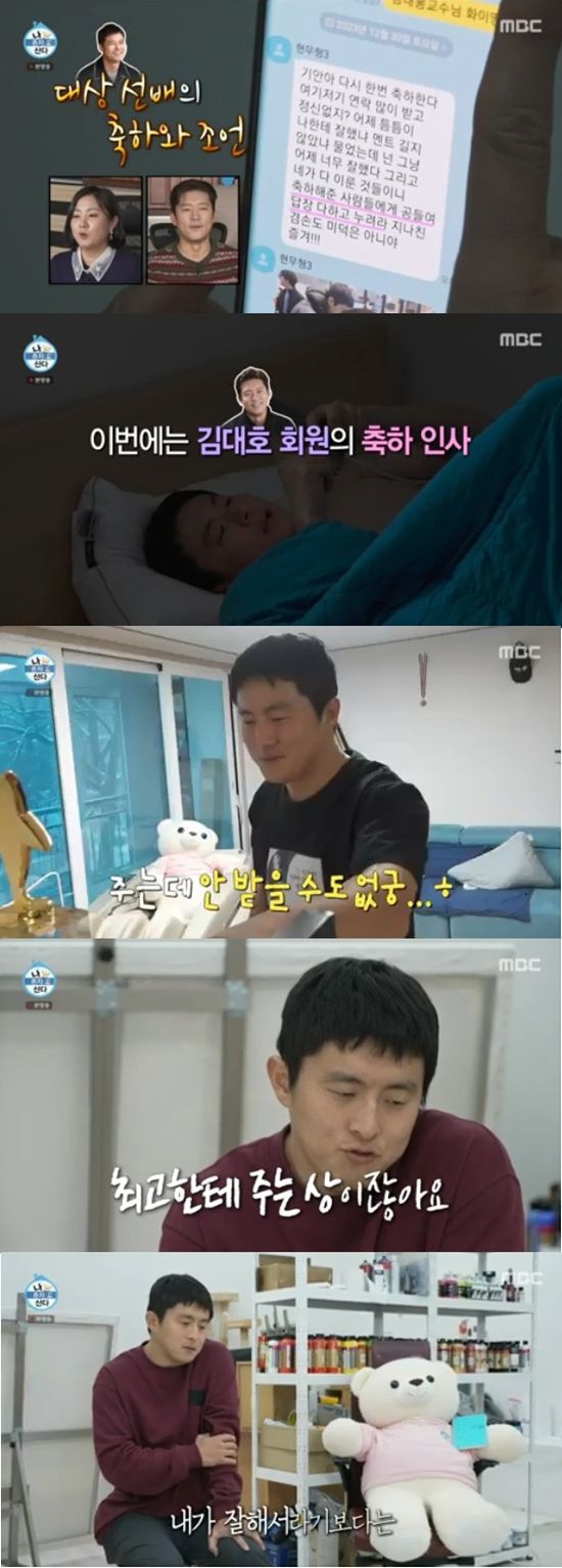 기안84는 시상식 다음날 오후 2시에 일어났다. 기안84는 전날 늦은 시간까지 이어진 회식으로 인해 힘들어 하면서도 스마트폰부터 확인을 했다. 기안84는 약 5, 60개의 메시지가 와 있었다고 했다. 기안84는 "축하 멘트 안 올 줄 알았다. 사람들이랑 톡 나누는 걸 안 좋아해서 연락이 많이 안 온다. 생각보다 너무 많이 왔다"며 흐뭇해 했다.