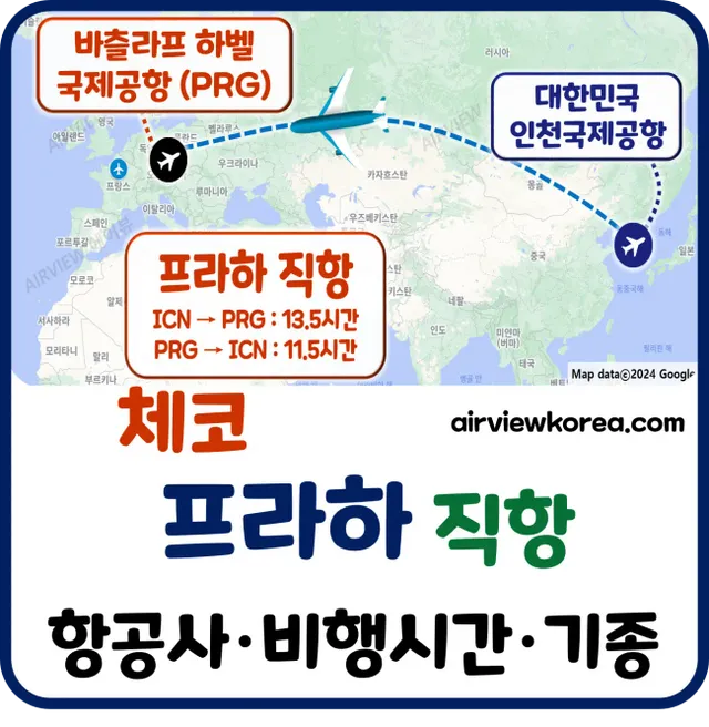 그럼 체코 프라하 직항을 기준으로 운항하는 항공편과