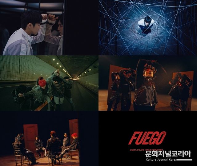 이어 강렬한 비트와 사이렌 소리로 귀를 자극하다 ‘FUEGO’라는 가사가 터져 나오자, 여섯 명의 멤버는 각자를 고통스럽게 하던 공간을 벗어나 한 데 모여 다음 스텝을 준비하는 듯 보인다.