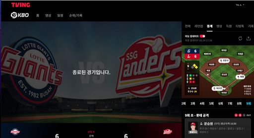 같은 날 티빙은 전날 인천 SSG랜더스필드에서 열린 롯데 자이언츠와 SSG 랜더스의 경기 중 갑자기 경기종료 안내와 함께 중계가 끊겼다.