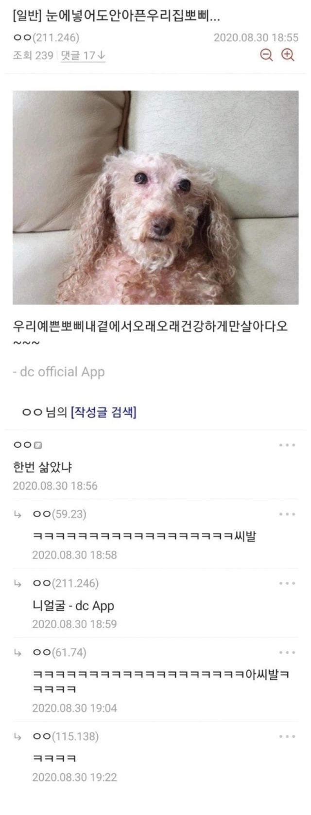 이미 3년전쯤 댕댕별로 갔고 저 댓글 작성자로 보이는 사람도 와서 사과함