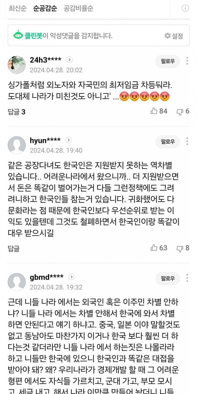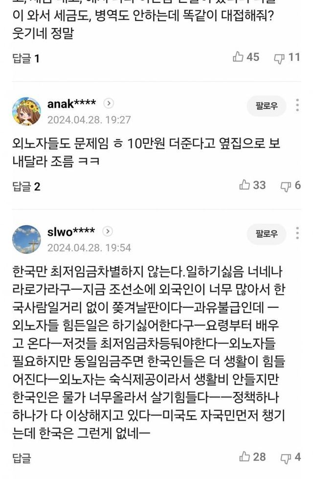 오히려 한국만큼 아무것도 요구하지 않고 그냥 평등하게 대우하면서 오히려 자국민을 차별하는 나라가 드문데 뭔 배부른 소리일까?