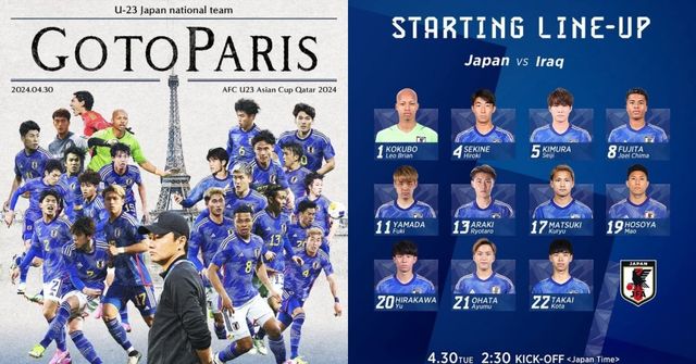 30일 카타르 도하 자심 빈 하마드 스타디움에서 열린 '2024 AFC U-23 아시안컵' 준결승 경기에서 일본이 이라크에 2-0 승리를 거두며 결승 진출 및 파리 올림픽 본선행 티켓을 따는데 성공했다.