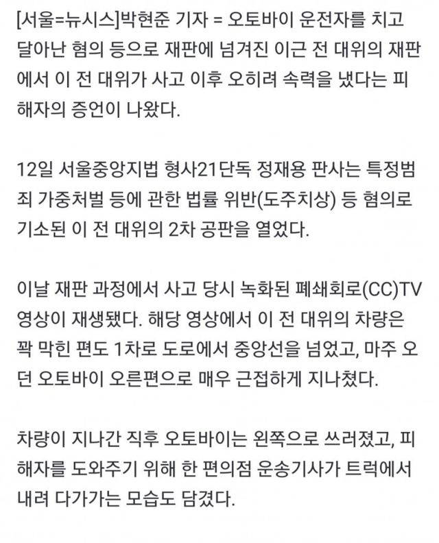 오토바이 주장은 이근이 탄 차가 점점 가속내서 사라져갔다