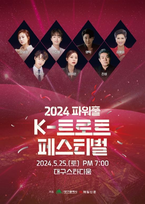 5월 25일 대구 스타디움 주경기장에서 열리는 '2024 파워풀 K-트로트 페스티벌'은 작년 2만 3,000명보다 7,000명 늘어난 3만 명 규모로 치러진다. 또한, 이번에는 평소 문화생활을 향유하기 어려웠던 다문화 가정, 저소득층 등 문화소외계층에 관람 기회를 제공할 예정이다.