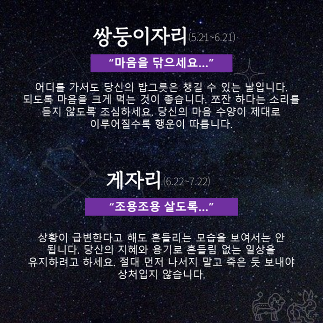 Δ 쌍둥이자리 : 마음을 닦으세요…