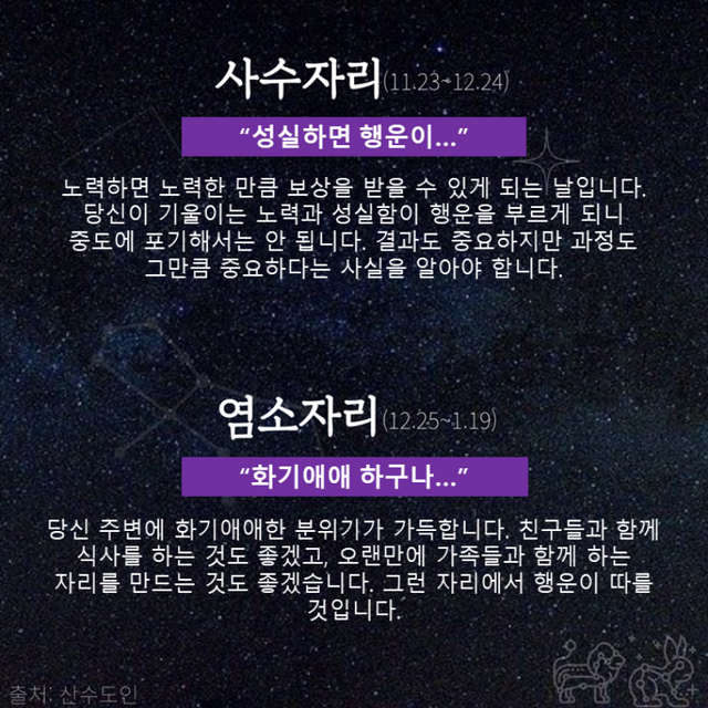 Δ 사수자리 : 성실하면 행운이…