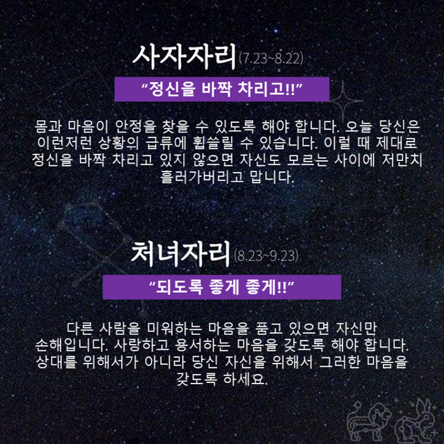 Δ 사자자리 : 정신을 바짝 차리고!!