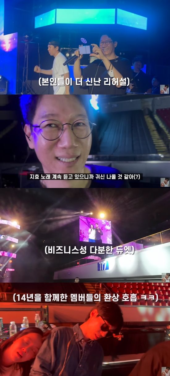 김종국과 지석진의 솔로 무대도 이어져 눈길을 끌었다. 지석진의 무대에서는 멤버들이 조는 척을 하며 '지석진 몰이'를 시작, 14년을 함께한 이들의 환상 호흡을 엿볼 수 있었다.