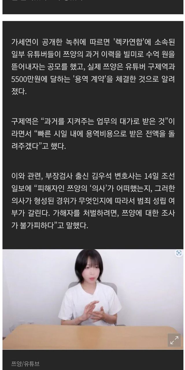 쯔양측이 이건 협박으로 인해 어쩔수없이 계약한거다