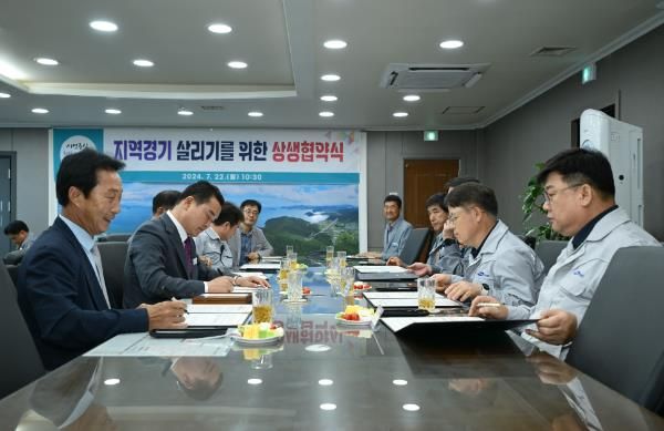 [파이낸셜경제=김예빈 기자] 거제시는 22일 시장실에서 지역경기 살리기를 위한 상생협약식을 진행했다.